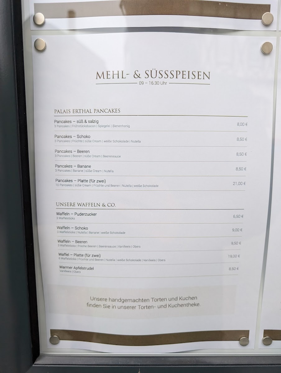 As you step into Palais Erthal, you're greeted by an ambiance that whispers of elegance. The café boasts a stunning winter garden and a lush terrace, inviting you to linger over your coffee and pastries while basking in the delightful surroundings. Whether it's a bright morning or a cozy afternoon, the inviting decor and warm light create a setting that feels both luxurious and comfortable.